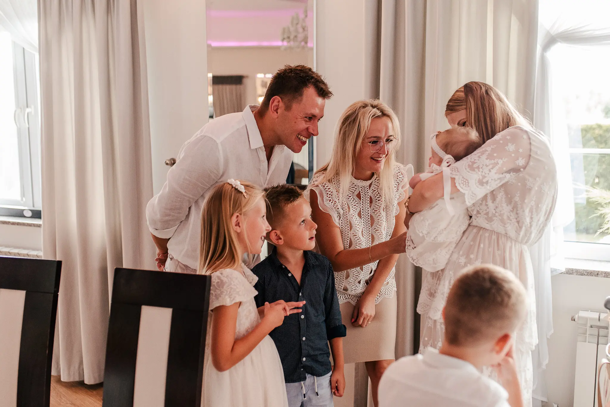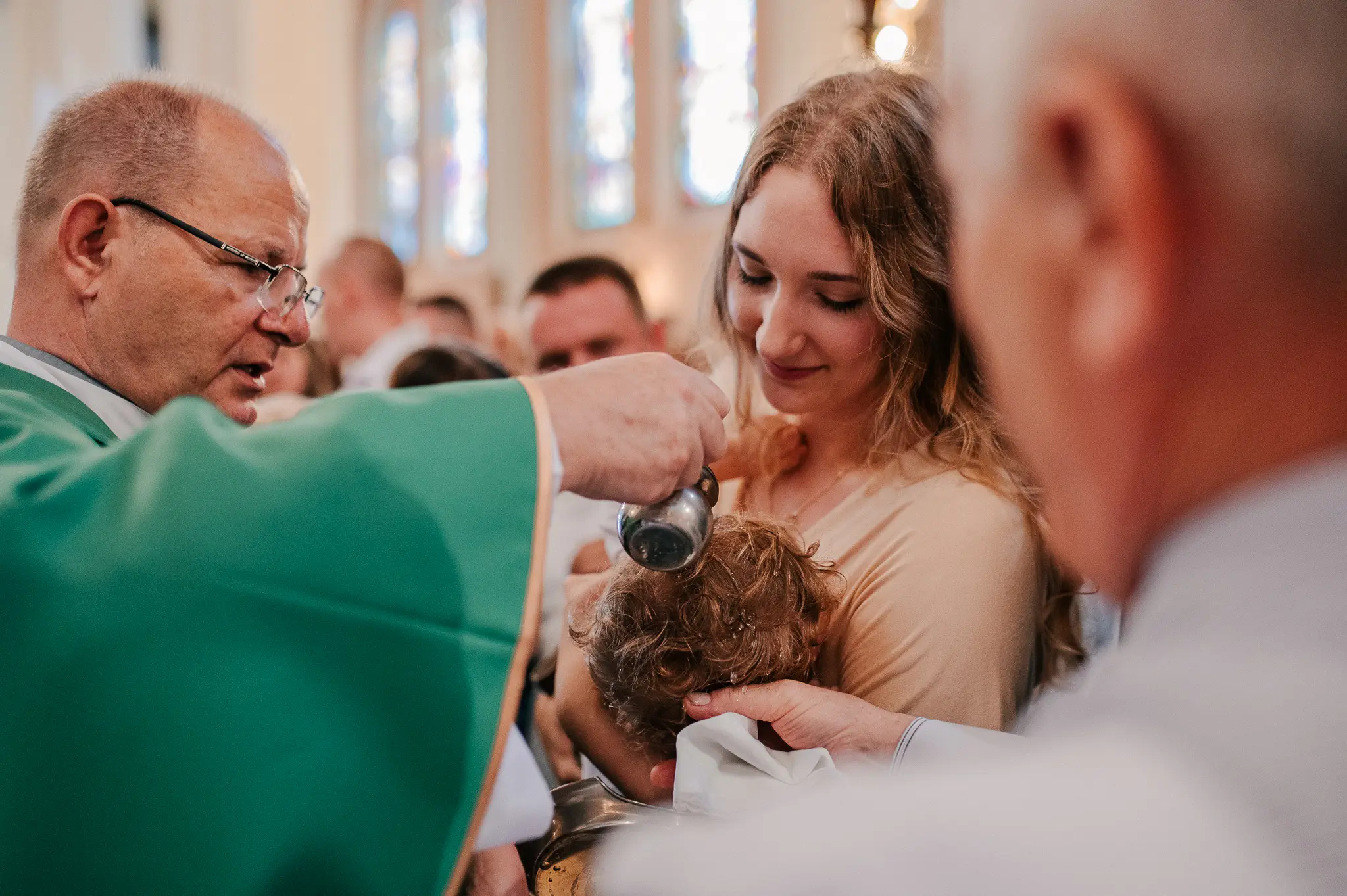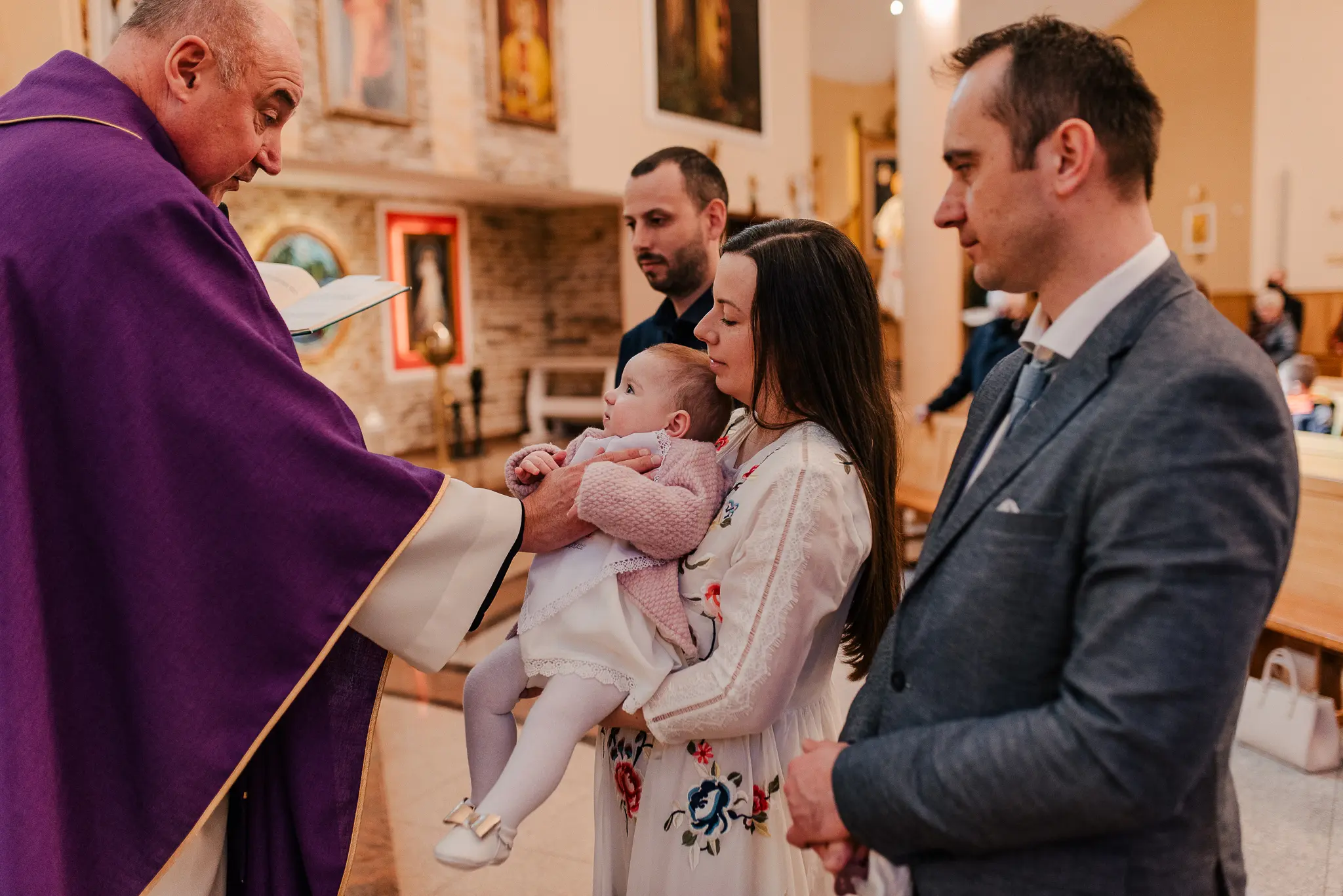 Chrzest święty to pierwszy sakrament dziecka, ale też często okazja, aby przedstawić nowego członka rodziny szerszemu gronu. W związku z tym, na tę uroczystość warto zaprosić także fotografa. Podczas reportaży staram się być dyskretnym towarzyszem całego wydarzenia – wykonuję wiele zdjęć niepozowanych, łapię Wasze uśmiechy, śmieszne minki dziecka, czy serdeczne uściski babci i wnucząt. Przy okazji chrztu możecie wybrać czy chcecie abym towarzyszyła Wam tylko podczas uroczystości w kościele, czy również podczas przygotowań w domu i świętowania na przyjęciu. Ja zawsze namawiam Was do reportażu z przygotowań domowych, ponieważ wtedy wykonuję wiele zdjęć maluszka i pozostałych członków rodziny, a także mam szansę na wykonanie zdjęć szatki, świecy czy innych dodatków. Posiadam kurs liturgiczny, który daje mi uprawnienia do fotografowania w kościele podczas uroczystości.