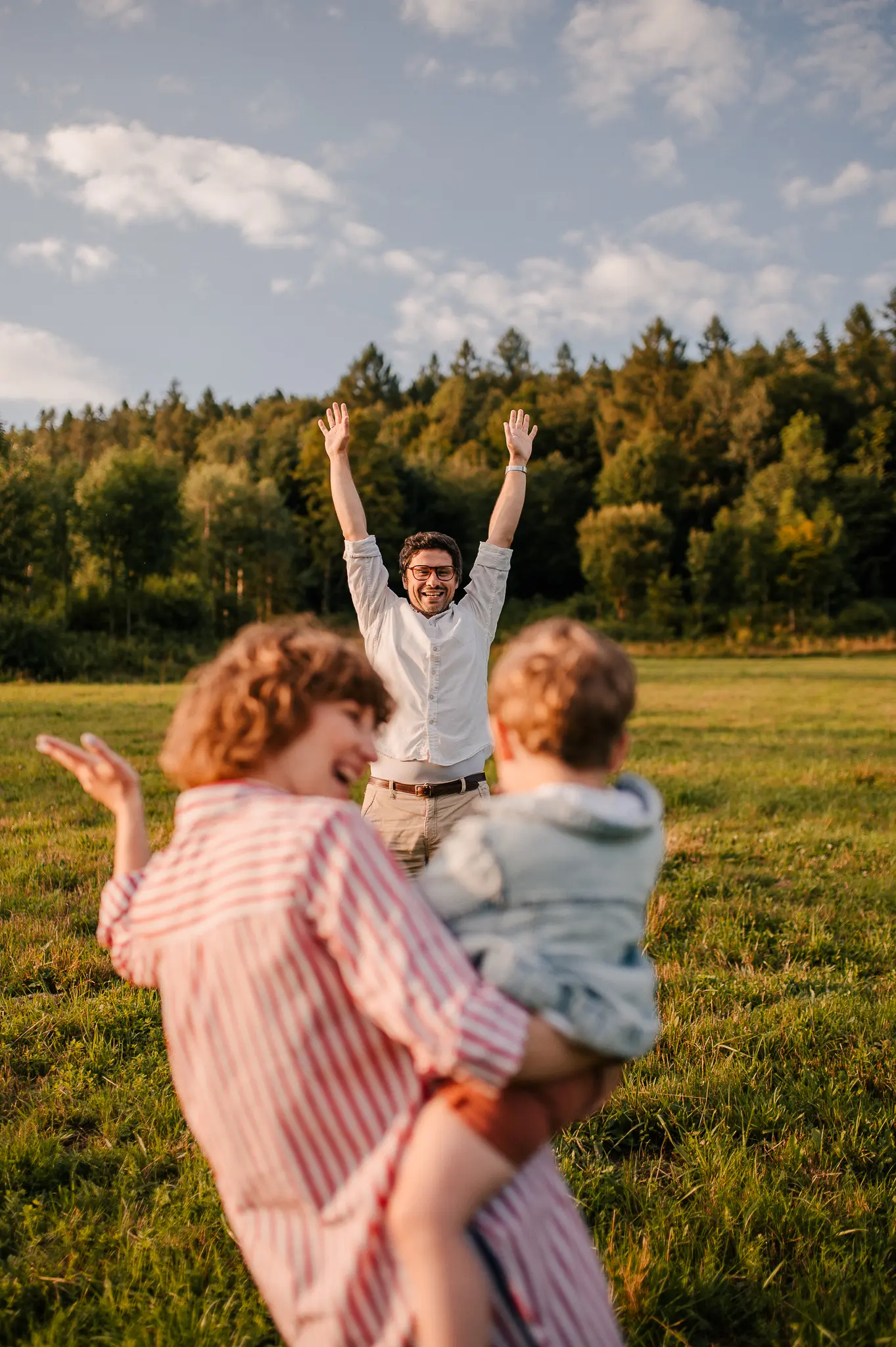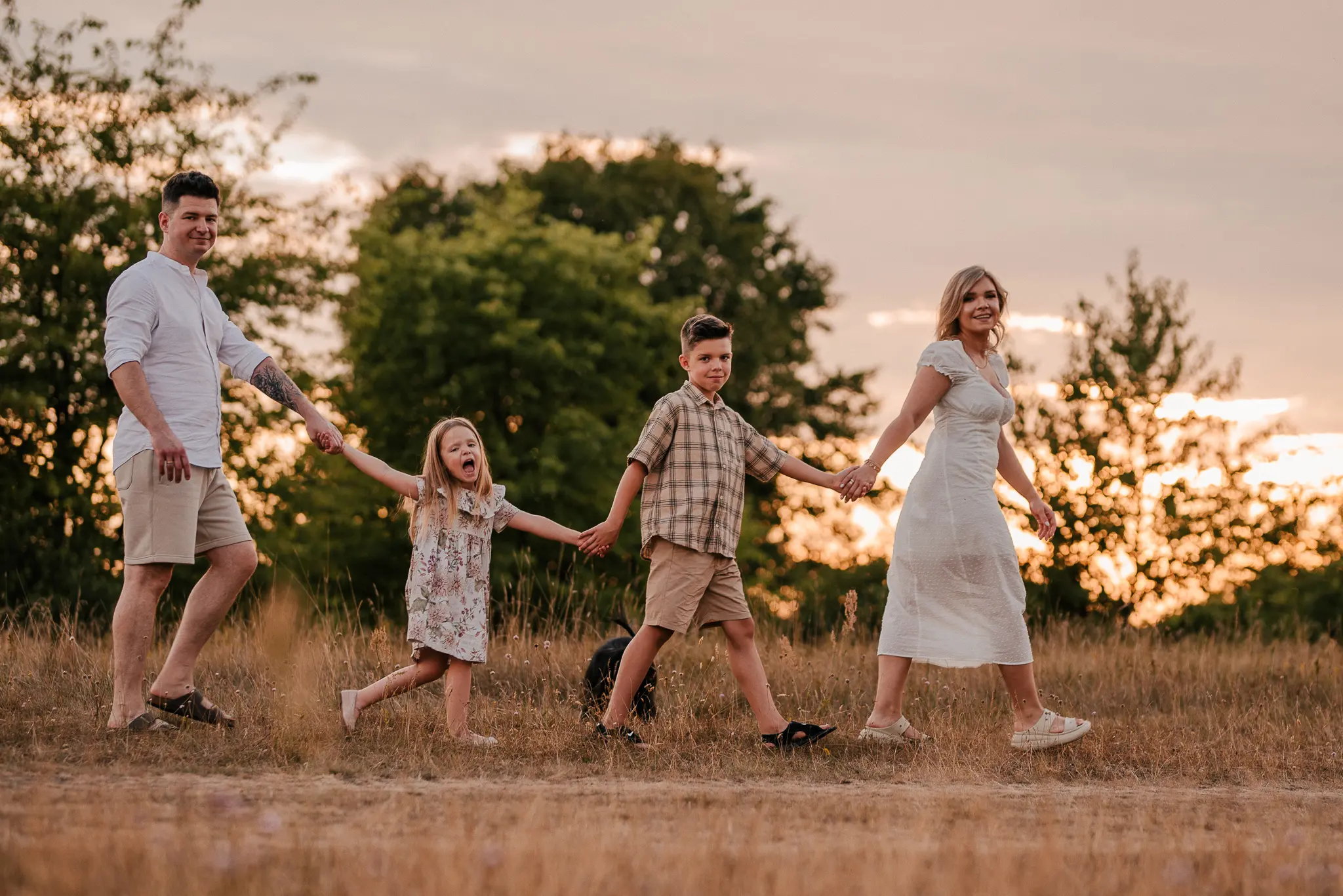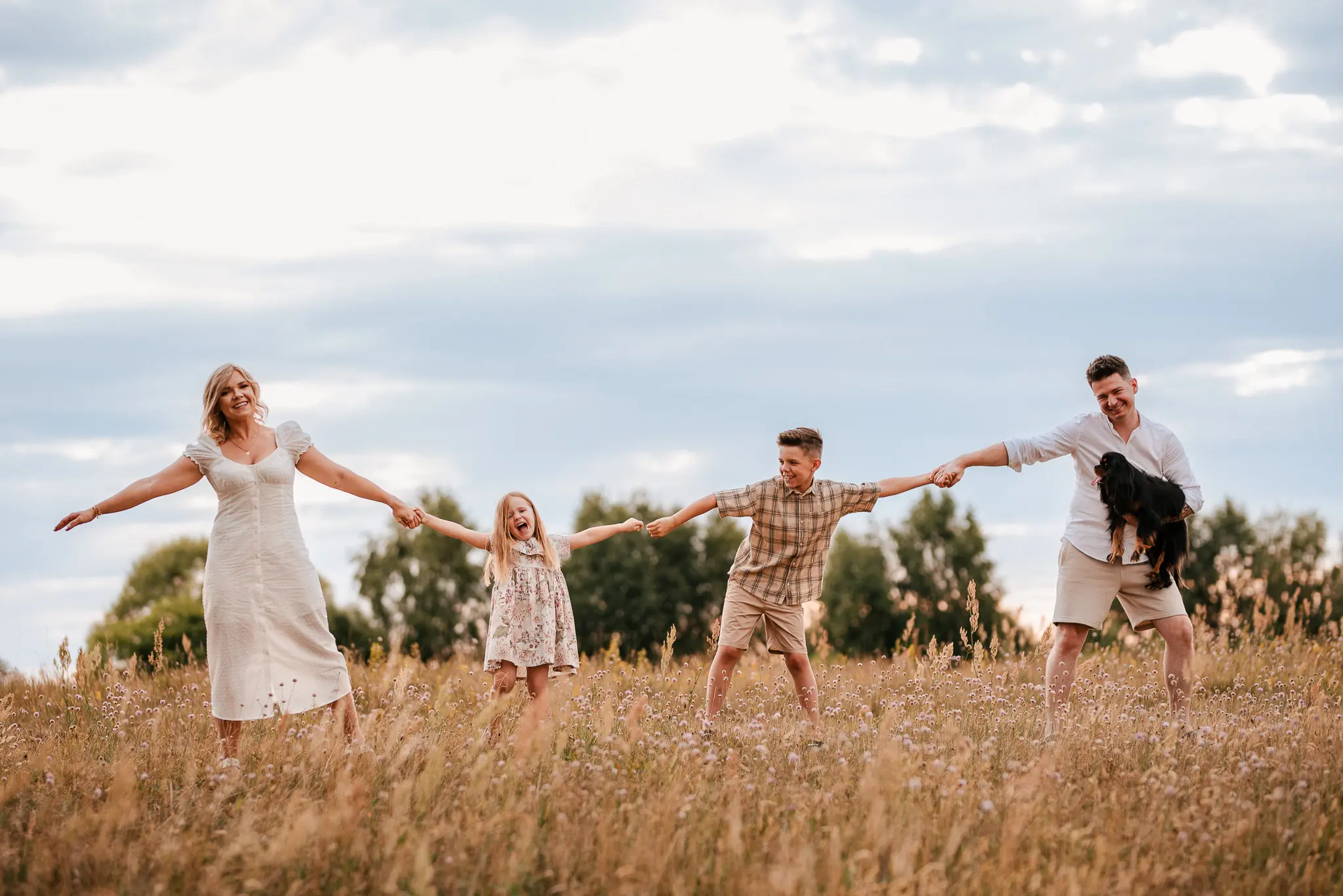 Sesja rodzinna to najlepszy prezent, jaki możecie sobie zafundować. To zdjęcia, na których wreszcie będą wszyscy członkowie rodziny, a mama odetchnie z ulgą, że nie musi namawiać dzieci i męża do pozowania 🙂 Na sesji rodzinnej możemy spotkać się w Waszym domu lub plenerze. Jeśli tylko pozwala na to aura, namawiam na plenery – łąki, pola, lasy czy plaża to idealne tło do uchwycenia Waszej radości! Sesje plenerowe trwają zazwyczaj ok. 1,5 godziny. Podczas naszego spotkania staram się nawiązać kontakt z dziećmi i pokazać im, że spotkaliśmy się, żeby fajnie spędzić czas. Często zachęcam Was do zapomnienia na chwilę o mnie, a skupienia się na sobie. To dzięki temu możemy stworzyć kadry pełne Waszych czułych spojrzeń, uśmiechów czy beztroskich wygłupów.
